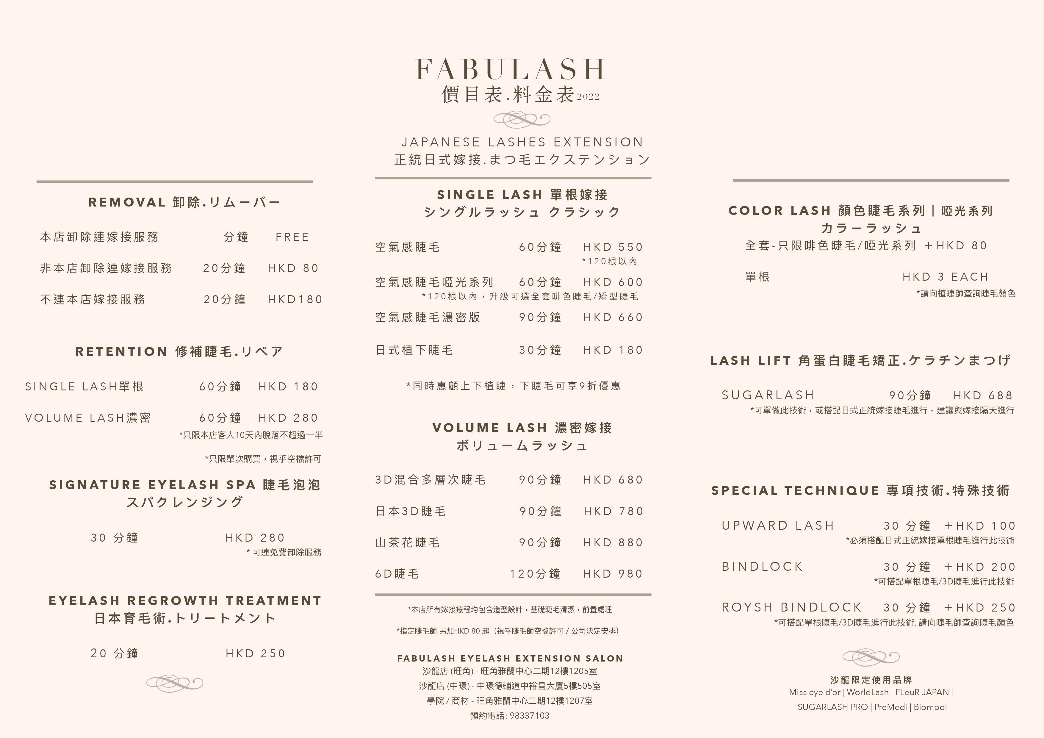 Fabulash Pricelist